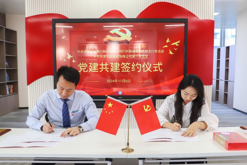 第一党支部和中国农业银行保利天悦支行党支部开展结对共建,11月6日在集团党建活动中心举行签约仪式,掀开了资源共享、优势互补、共同提高的新篇章。签约仪式在双方支部党员见证下进行结对共建协议书签字和牌匾互换仪式。