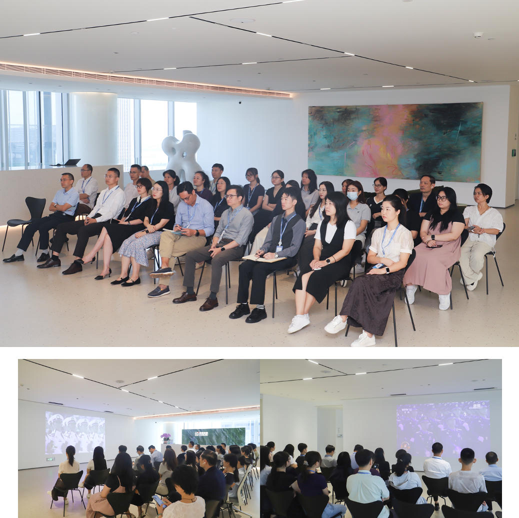 上午9时,纪念大会正式开始,集团全体员工整齐有序地聚集于前台大厅,认真聆听习近平总书记重要讲话,并一同观看了盛况空前的阅兵仪式。整齐划一的受阅方阵、威武雄壮的人民军队、先进精良的武器装备,既展现了国家的强大,也带来了强烈的视觉冲击和心灵震撼。观看过程中,员工们全神贯注,被阅兵仪式的宏大场面和庄严氛围深深感染,不禁轻声赞叹,眼中满是激动与自豪。